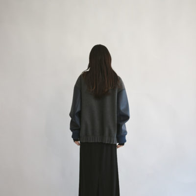 身頃はメランジ調のメルトンで大人っぽく、袖は厚みのあるFレザーを使用。